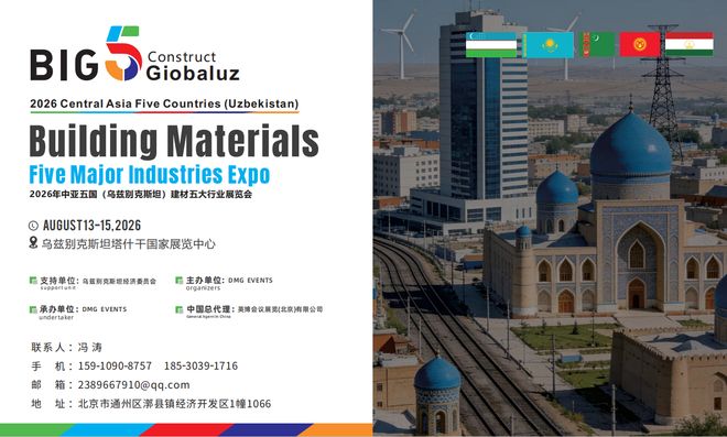 2026BIG5中亚(乌兹别克斯坦)建材五大行业展览会将于2026年8月13日至15日在乌兹别克斯坦塔什干国家展览中心举办