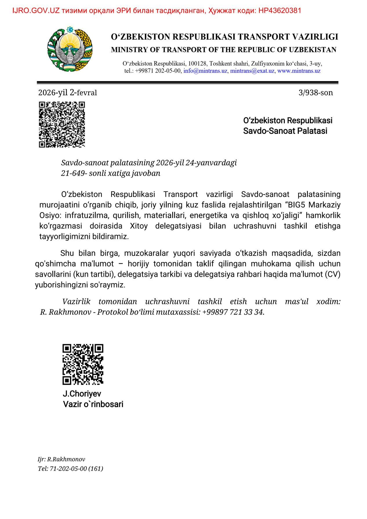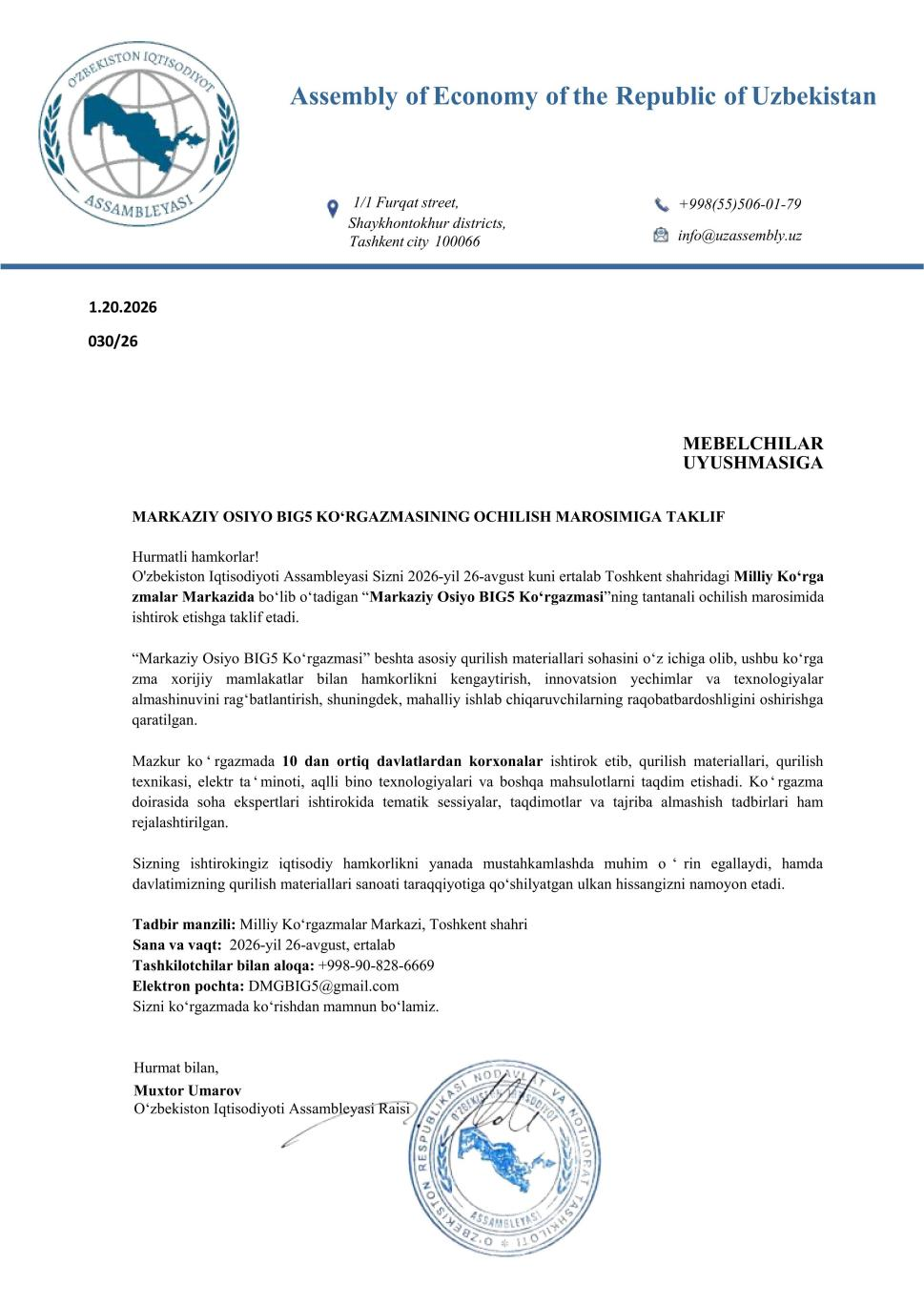 主办单位:乌兹别克斯坦建设部(MCH Ruz)